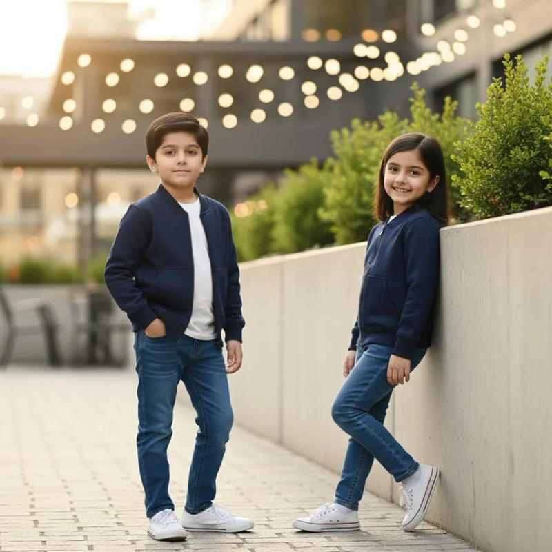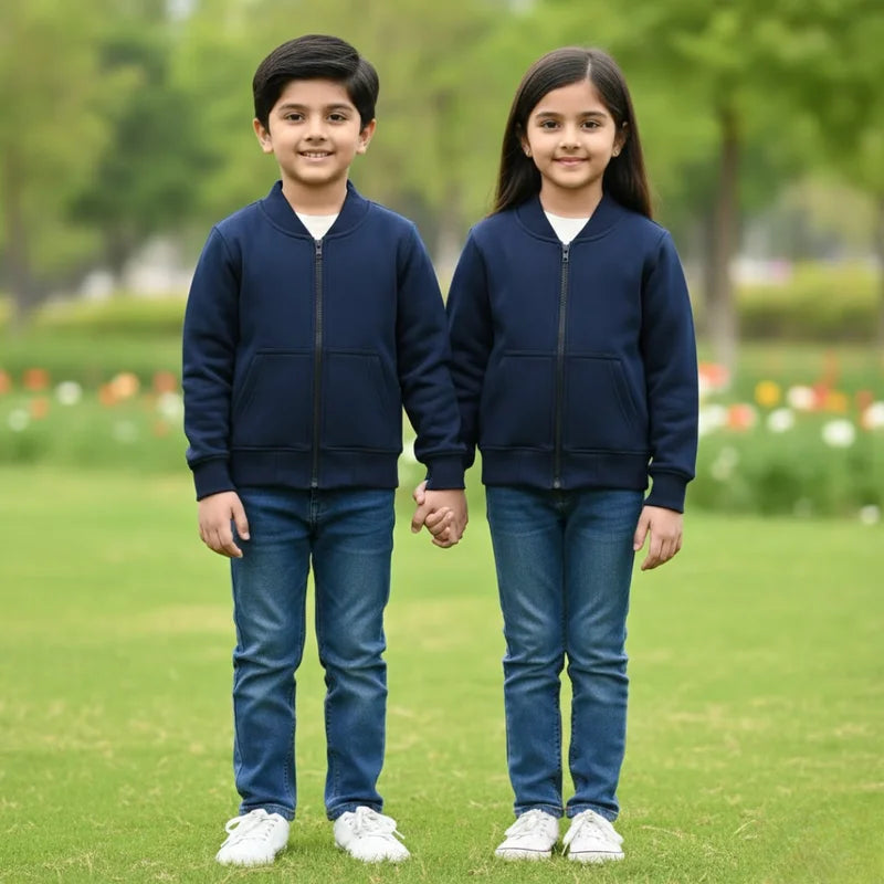 Plain Fleece Jacket with Zipper and 2 Kangroo Pockets